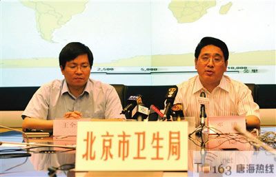 昨晚,北京市疾控中心主任邓瑛(右)、北京市疾控中心传染病地方病控制所所长王全意通报,北京市再报告两例输入性甲型H1N1流感确诊病例,目前北京甲型H1N1流感确诊病例达到4例。新华社记者李文摄