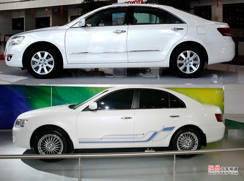 就目前来看,广汽已经公开展出了四款自主车,分别为四门COUPE、敞篷COUPE、AHEV和AEV。其中最接近量产、同时与凯美瑞最相似的车型就是AEV了。AEV是广汽集团在07年广州车展上展出的一款自主车型。该车无论从整体风格还是侧面线条来说,都与凯美瑞车型非常相似。
