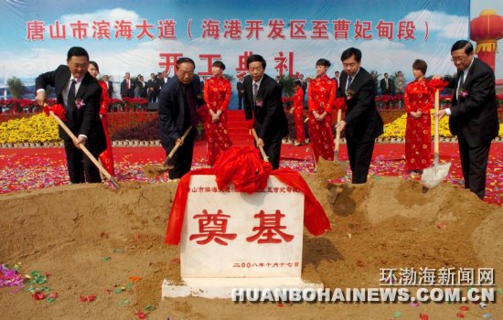 省委常委、市委书记赵勇宣布滨海大道开工,市委副书记、市长陈国鹰致词。市人大常委会主任张耀华,市政协主席张国栋,市委常委、曹妃甸工业区党工委书记兼管委会主任姚自敏,中国建筑股份有限公司副总经理李加彬,市政府党组成员、曹妃甸工业区管委会常务副主任薛渤珣,市委秘书长刘建国出席开工仪式。市委常委、常务副市长周仲明主持开工仪式。赵勇、陈国鹰、张耀华、张国栋等共同为滨海大道开工奠基。