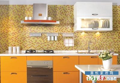一般而言,小户型厨房在整体色彩安排方面,切忌花花绿绿。特别注意不能使用印有立体感图案或明暗对比强烈的装饰材料,否则不仅会使厨房面积在视觉上显得狭小,而且不易清洁。
