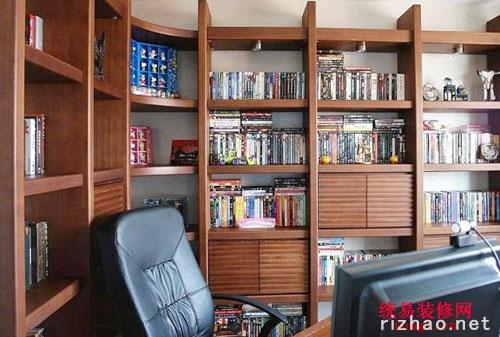 开放式的组合柜是占据了书房的1/2墙体,即可作为书柜又可作为摆放主人心爱的物品的博古柜,巧妙的转角设计为本就不大的书房节约了不少的空间。