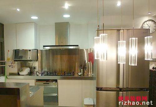 以金属色为主的厨房充分考虑到了烹调时的合理性,给予了烹调者充分的空间,可以说是很好的考虑到功能性的设计。