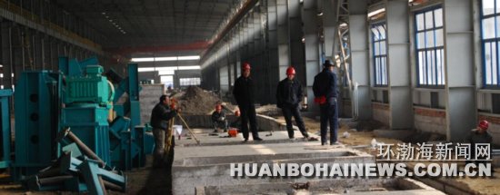 随后笔者来到文丰钢铁项目Ф355ERW直缝焊管项目车间,实地了解焊管项目施工进度。在有关负责人的陪同下,笔者看到:厂房外围土建工程已经完工,车间内设备基础工程已基本完工。焊管项目主体设备正在陆续到位,厂房内工人们在技术员的指导下,正在紧张有序地安装各种设备。该负责人表示:文丰建设者将加快工程进度,力争在3月底前完成安装并投入试生产。