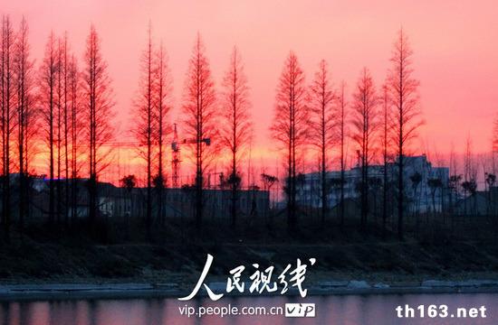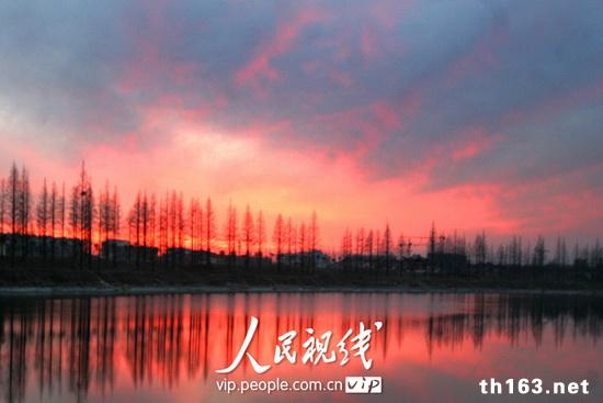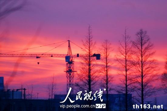 2010年1月26日,江苏省赣榆县出现难得一见的火烧云美景,晚霞似血。