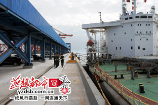 曹妃甸边检站官兵在矿石码头二期巡逻。