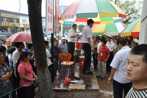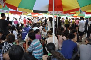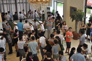 兴海名都商业广场售楼部外500余客户等待摇号选铺