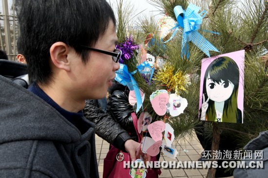 记者在交友树版块发现,20颗交友树上挂满了记录未婚青年个人信息及择偶条件的卡片,而且在现场的人群中,从寻找到联系,有不少是家长打了头阵。50多岁的袁阿姨在一个任姓女孩留下的信息卡前逗留了很久。她告诉记者,自己的儿子在曹妃甸上班,30岁了,还没有女朋友,她今天特意赶来替儿子物色女友。她已经看了好几个女孩儿的信息了,觉得这个女孩子不错,从照片上看,觉得漂亮和善。但是女方是1988年出生的,而她的儿子是1982年,可能有一定的年龄差距,考虑再三,她还是记下了女孩子的联系方式,决定试一试。