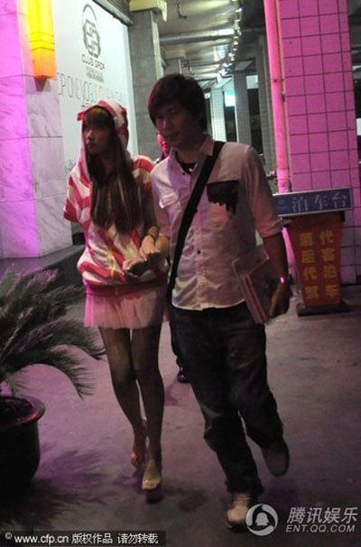 腾讯娱乐讯 (CFP/图文)上海,日前,陈冠希旧爱谢芷蕙在保镖的护送下挽着神秘男子现身夜店。
