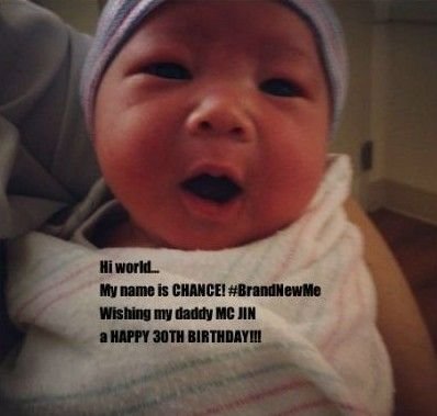 腾讯娱乐讯7日凌晨,有香港媒体报道,香港歌手、演员欧阳靖在6月1日喜得贵子,儿子取名为“Chance”。歌手欧阳靖(MC Jin)在6月荣升老爸,他在网上公布喜讯:儿子“Chance”已于6月1日在美国出世,并附上儿子照片,包着毛巾的Chance脸肉肉的、眼睛圆圆的,样子很帅气。