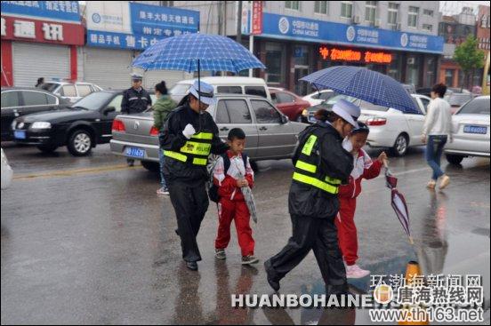 唐海警花雨中站好“护学岗”(图)