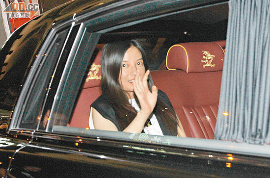 离开时她并没有架上黑超,但明显面颊通红,估计席间喝了不少酒,并非常友善地向记者挥手道别。