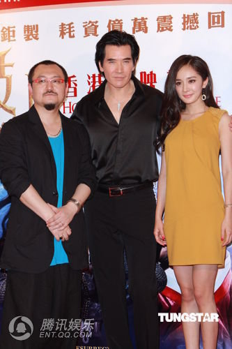 腾讯娱乐讯6月27日,由乌尔善执导的魔幻爱情电影《画皮II》在香港举行首映礼,导演乌尔善携主创杨幂和费翔现身为电影宣传。而戏中的两位女主角周迅和赵薇则因有工作在身不克前来。