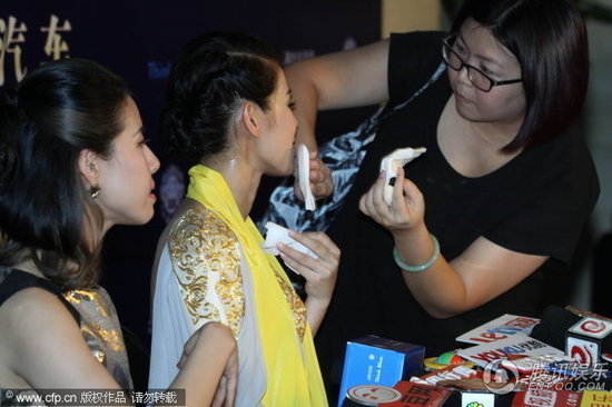 胡杏儿大露背忙补妆 旁若无人擦胸前汗