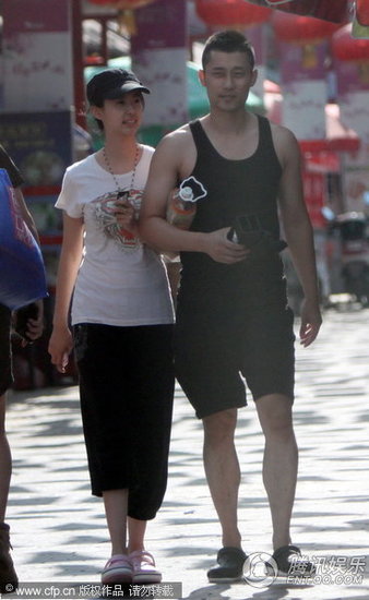 兽兽当天戴着黑色鸭舌帽,身穿ED HARAY美国潮牌白色虎头短袖T恤,黑色吊裆裤。其在一家床上用品店内用心挑选商品,令人意外的是,一位身穿黑色背心的男士也在旁边帮她一块儿挑选,兽兽还把下巴搁在背心男的肩膀上,二人动作十分亲昵。但是二人和老板娘讨价还价了将近半小时,最后还是什么都没买出了店,老板娘脸色相当不好看。