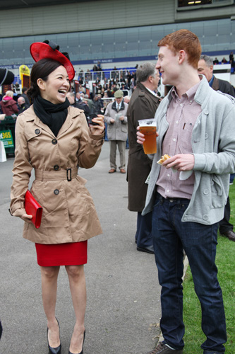 在和骑手们聊完赛马这项运动之后,阿雅来到下注站,虚心请教旁边买马的人如何下注如何看赔率,在学习完如何下注后,阿雅看到现场下注气氛非常的热烈,跃跃欲试下了10英镑,甚至怂恿周围同事一起下注。开始比赛后,阿雅下注的2号赛马一开始处于领先位置,阿雅激动的都快跳起来,但是最后还是被别的赛马赶超,心有不甘的阿雅只能是不舍得离开了赛马现场。“血本无归”的阿雅笑称:“不是说新人手旺吗?怎么一上手就输,看来十赌九输,真的是不能赌。”