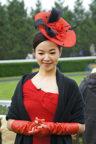 阿雅拍摄当天的气温只要五度,为了使节目拍摄达到完满的结果,阿雅仍然正在寒冷的气候中以斜肩礼服出镜,用流利的英文与骑手们交流关于英国的赛马历史和他们赛马的经验,也问道了女生最关注的话题——如何减肥,骑手们回答:保持体重是他们最重要的工作环节之一,他们经常会有大量的运动,运动和控制饮食是他们唯一的秘诀。阿雅赛场上一声红帽红裙的贵族扮相更是为节目减色不少。