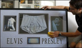 猫王曾在1977年的一次表演中将这条淡蓝色短裤穿在他那富有特色的白色紧身外衣下面,此后不曾洗过,以致内裤上还残存污渍。而猫王就是在那一年的8月16日去世的。