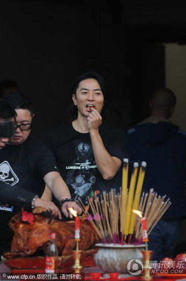 腾讯娱乐讯日前,郑伊健为演唱会进行拜神仪式。结束了一连四场演唱会之后采访宣布明年将会与女友蒙嘉慧结婚,在演唱会之前的拜神仪式上郑伊健喜笑颜开意气风发。