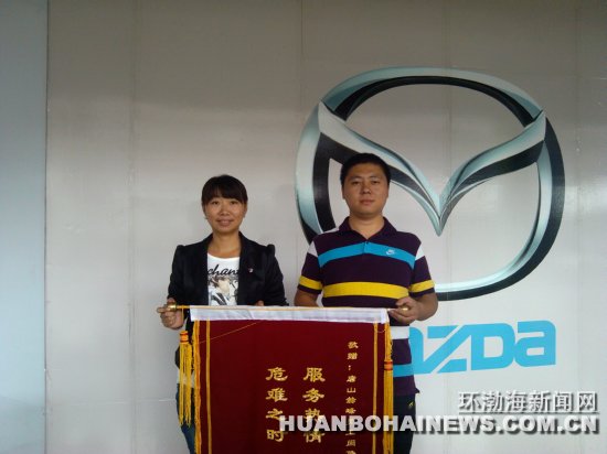 9月6日,一汽马自达的车主王先生将绣有“服务热情,心系车主,危难之时,涌现真情”的锦旗送到了唐山冀东赫峰一汽马自达4S店员工手中。