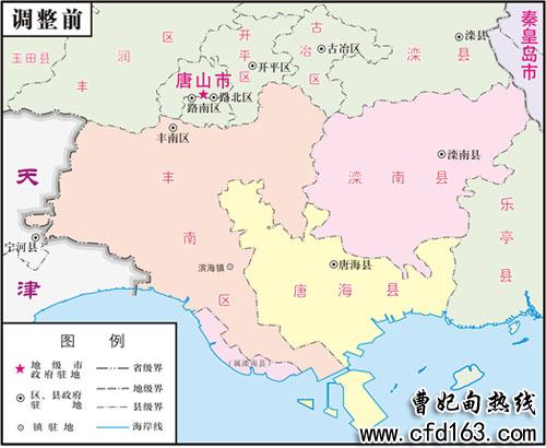 通告说,根据《国务院关于同意河北省调整唐山市部分行政区划的批复》(国函[2012]52号),河北省唐山市部分行政区划已作以下调整:撤销唐海县,设立唐山市曹妃甸区,将唐山市丰南区滨海镇划归曹妃甸区管辖。以原唐海县和丰南区滨海镇的行政区域为曹妃甸区的行政区域。曹妃甸区人民政府驻唐海镇垦丰大街23号。