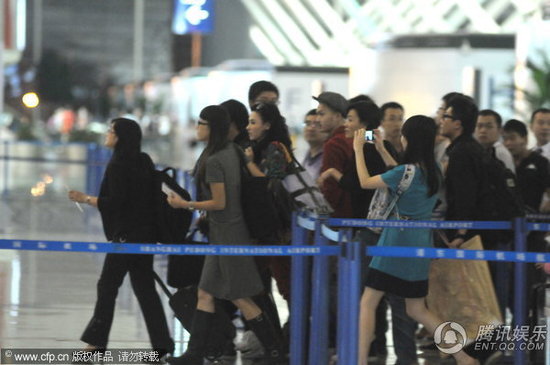 之后张柏芝在粉丝的簇拥之下进入安检区,张柏芝多次转身与粉丝打招呼道别。