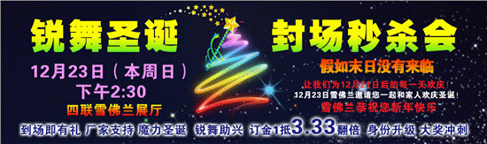 此次雪佛兰年末专场促销活动,魔力圣诞,锐舞助兴,跨年派对,并遵循厂家指导,促销力度大,参与车型有新赛欧三厢、新赛欧两厢、爱唯欧三厢、爱唯欧两厢、科鲁兹,甚至还有本年度新上市车型迈锐宝、新景程,及都市SUV科帕奇!厂家支持力度大,优惠促销力度大,2012年终大促销仅此1次,互动内容丰富,前所未有,盛况空前!