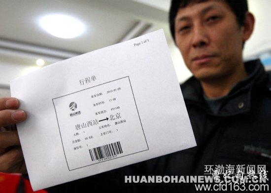 通过唐运集团公司网站打印出来的行程单(车票) 记者 付卫峥 摄