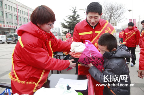 现场一个小朋友捐赠衣服。长城网 杨军 摄