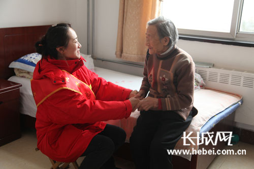 志愿者陪老人唠家常。长城网 赵文浩 摄