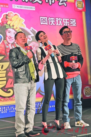 本报讯(记者王振国/文,王维宣/图)功夫喜剧《笑功震武林》定档今天全国上映。昨日,导演王晶携主演曾志伟、吴君如、王祖蓝、郑中基、童菲、孟瑶、伍允龙等抵广州宣传造势。