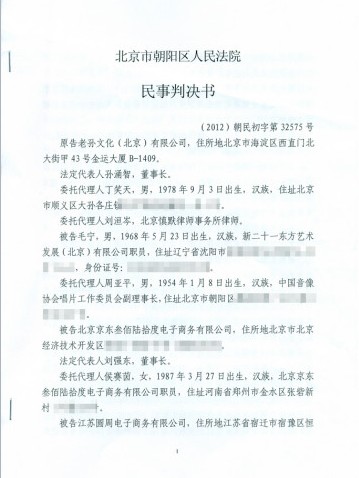 毛宁《传奇》侵权案被驳回法院判决书曝光