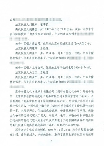 被王菲在春晚唱红的《传奇》,其版权早在2008年已被老孙公司买走。而在毛宁2012年4月25日发行的新专辑《12种毛宁》中,他也翻唱了这首歌。去年老孙文化称,毛宁是在未获得许可的情况下演唱此歌,行为属于侵犯版权,将其告上法庭,索赔经济损失50万元。