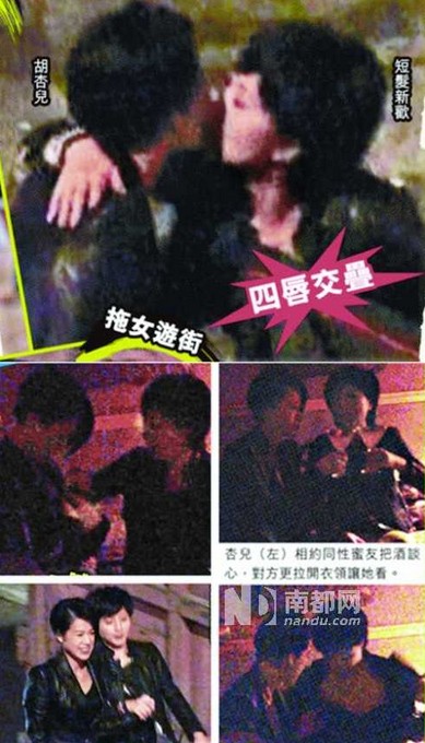 南都讯记者吴莎和黄宗泽分手、恢复单身的胡杏儿,最近被香港媒体爆出惊人绯闻!她被拍到和女性友人举止亲密,不仅在酒吧互相戳胸,更当街十指紧扣并且亲吻对方!不过,胡杏儿在接受采访时否认自己是同性恋。