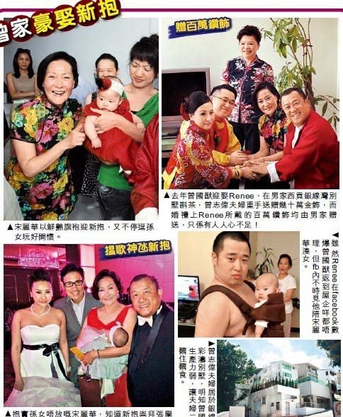腾讯娱乐讯据香港媒体报道,去年12月曾志伟为维持娱乐圈和谐而涉嫌掌掴黄浩,最终被落案起诉,本月须第4度返警署报到。娱圈不太平,家事更加乱。其儿媳妇Renee(张可蕙)被揭在网上爆粗狂数夫家,有传志伟为免在应付官司期间添烦添乱,已将国猷和新抱逐离家。