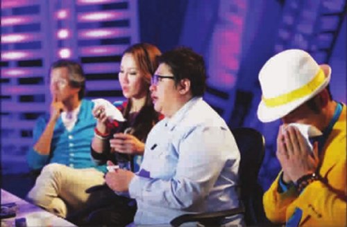实际上,明星们流泪场面还常常出现在其他的选秀节目之中。如《中国梦之声》,当遇上盲人学员,李玟(微博)和韩红(微博)(微信号:hanhongweixin)哭得背过身去,黄晓明(微博)(微信号:lovemingzone)也泛起泪花。虽然李玟表示,她以后会控制住泪水,但在上周日播出的北京站节目中,她和韩红似乎哭得更厉害了。来自青海的地质勘探员妥云福从小和单亲妈妈生活,歌唱全靠自学,他唱了一首难度极高的外文歌,让从未听过自己唱歌的妈妈在台上激动得泪流满面,致使导师席上的韩红、李玟也跟着开始飙泪……四位导师中,唯独王伟忠(微博)没掉过泪,他风趣地说:“我这个年纪的人已经没有眼泪了,所以叫干爹嘛。”