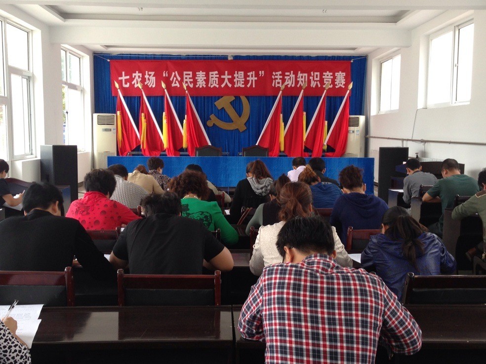 竞赛内容以《公共文明礼仪知识简明手册》、《公民道德建设读本》为主要参考资料,内容丰富,贴近实际。七农场把此次竞赛活动作为公民素质提升的有效载体,使广大党员干部在参与竞赛的过程中提高个人素质,提高服务水平,以文明的形象,优质的服务推动我场经济社会快速发展。