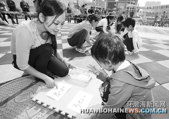 图为老师和学生进行智力赛跑。记者 赵勇 摄
