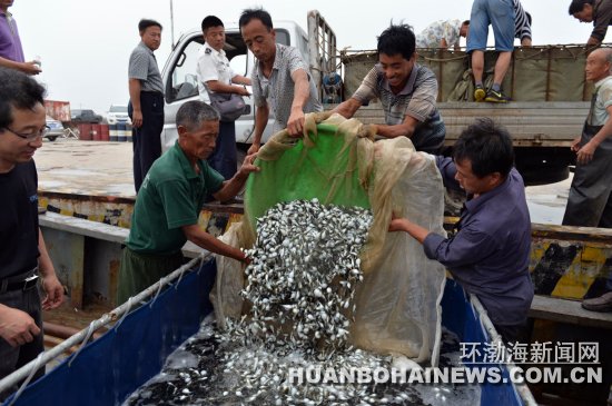 6月25日,有超过一百万尾东方红鳍豚鱼苗通过滦南县与曹妃甸区交界的双龙河出海口放流到渤海湾。