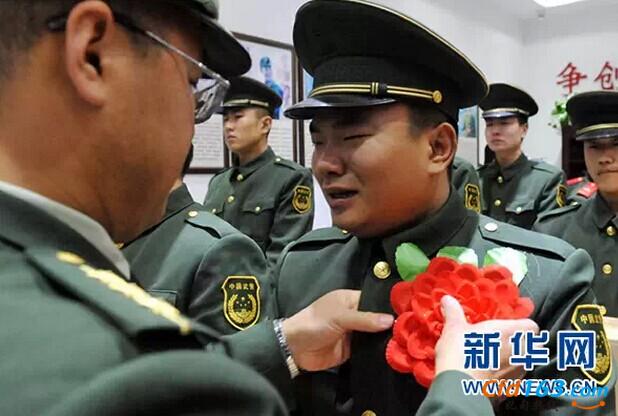 仪式上,这个站参谋长宣读了2014年度士兵复退命令,标志着这个站40余名老兵正式退出现役。在庄严的音乐声中,老兵们的警衔、领花、帽徽等被一一摘下,胸前戴上了象征着光荣退伍的大红花和复退纪念章。老兵们庄严承诺,一定用自己的汗水、行动,永远捍卫军人荣誉,为军旗增添光彩。随后,这个站举行了升旗仪式,老兵们用军礼表达了对警营的留恋与不舍,为军旅生涯画上了一个圆满的句号。