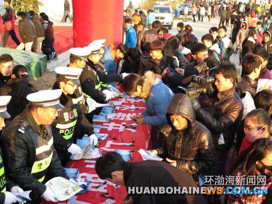 在第三个“全国交通安全宣传日”到来之际,12月2日下午,曹妃甸区公安交警支队第四大队与唐山工业职业技术学院、唐山湾生态城管委会在工职院新校园内联合举办了交通安全宣传暨“平安校园”活动启动仪式。学院2200多名师生和担负学院12辆校车运输任务的唐山天宇高客有限公司干部职工参加了这次宣传活动,认真观看了新版交通规则和交通事故案例展板。