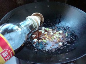 6.调入料酒、酱油煸炒。