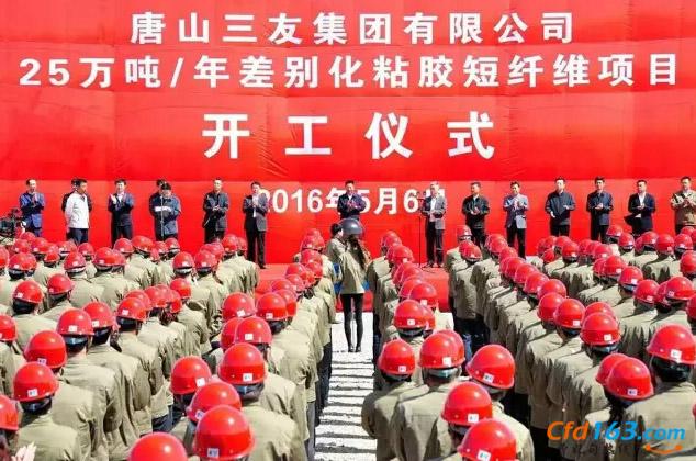 唐山三友集团年产25万吨功能性、差别化粘胶短纤维项目今天正式开工。该项目规划为两条年产12.5万吨的生产线,是目前全球最大的粘胶短纤维生产线。