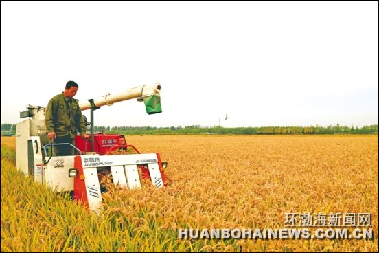 环渤海新闻网消息 近日,在曹妃甸区八农场,水稻联合收割机在田间往来奔忙,农民脸上挂满了丰收的喜悦。截至目前,该场水稻收割面积已达一万余亩。