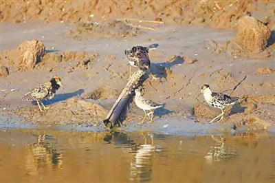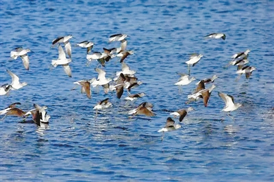 鸻(heng)鹬(yu)类水鸟观测的最佳地点是一号岛附近的海边滩涂,以及去往一号岛方向周边的盐池。
