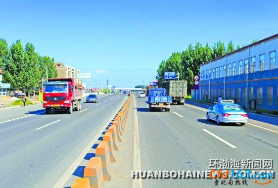 过去的唐曹公路只有二级路标准,路窄车多,尤其过街路段,车多人多,经常发生拥堵,交通事故多发。加宽改建唐曹公路是沿线厂企、商户和居民的普遍愿望,是曹妃甸总体规划配套基础设施的组成部分,是构建唐山市中心城区至沿海新区直达通道。在市委、市政府的高度重视下,市交通运输局和丰南区政府合作对唐曹公路进行改建。施工中,市交通运输局多次专题研究解决方案,最终选择与交通运输部公路科学研究院合作实施科技示范工程,研究制定了“不断交施工期安全组织” “旧路面回收冷再生”等多项专项施工方案。改建后的唐曹公路宽阔平坦,设施完备,标志齐全,设计时速80公里/小时,为双向行驶的一级公路,使驾车从市区到曹妃甸的行驶时间缩短至40分钟。
