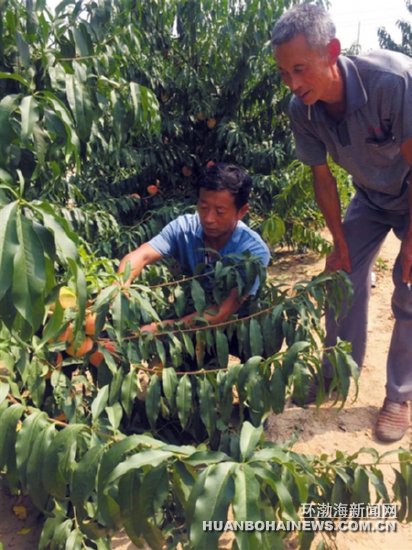 图为孙胜龙正在面授村民种植“吉祥红”晚桃栽培技术。孙东亮 摄